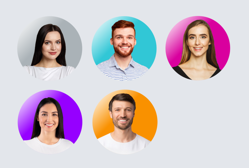 Separate the background from the photo and frame the portrait on the background in sub-brand colors. Corresponding background files are included in the online brand guide. If possible and necessary, use the online application